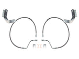 The ICON Vehicle Dynamics 4.5-7” Lift Extended Brake Line Kit for the 2017-2025 Ford F-250/F-350 Super Duty is an excellent upgrade for the front of lifted Super Duty Trucks. These high-quality stainless steel braided brake lines feature an extended length to prevent over extending of OE brake lines on trucks with 4.5-7” of front lift or the requirement to bend factory hard brake lines to work with drop brackets during installation of the suspension system. Their direct bolt-in design bolts directly to the OE hard lines and brake calipers without any additional hardware required, making installation a breeze.