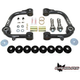 When lifting your truck, the stock upper arms become the limiting factor and hold back your suspensions performance. Our Camburg upper arms address these issues and more. Replacing the stock ball-joint with a larger 1.00 uni-ball bearing we’re able to gain wheel travel with a part that is considerably stronger and will last longer under extreme conditions. We build more caster and change the camber curve to correct geometry so the vehicle aligns correctly and improves driving characteristics and handling. Using the latest CAD/CAM engineering software we design these arms to the strictest standards using our FARO laser scan arm to model the OEM parts and frames. Manufactured in-house, we have the tubes CNC laser cut and bent, then are MIG welded in precision fixtures before sending out to be sandblasted and powder-coated. Our in-house CNC machine shop makes all the machined parts including the uniball mis-alignment spacers from heat-treated stainless steel. We pride ourselves in producing the best parts available under our own roof and control. Increases usable wheel travel Corrects camber and caster Eliminates weak factory ball-joints Thicker.156" wall round tubing Laser cut and CNC bent tubes MIG welded CAD/CAM engineered Polyurethane frame pivot bushings with grease-able zerk fittings FK 1.00" PTFE-lined uniballs pre-installed Steel gray powder-coating All necessary hardware included and ready to install Made in the USA Designed for 1-3" of lift Increases usable wheel travel Corrects camber and caster Eliminates weak factory ball-joints 1.00" FK uniballs.